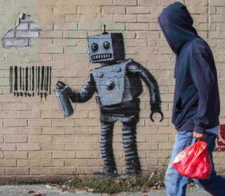 Banksy is an English-based graffiti artist, political activist and film director whose real identity is unknown. His satirical street art and subversive epigrams combine dark humour with graffiti executed in a distinctive stenciling technique. Banksy's identity remains unknown, despite intense speculation. The two names most often suggested are Robert Banks and Robin Gunningham. Pictures that surfaced of a man who was supposedly Banksy pointed toward Gunningham, an artist who was born in Bristol in 1973. Gunningham moved to London around 2000, a timeline that correlates with the progression of Banksy's artwork. Some examples of Banksy's art: